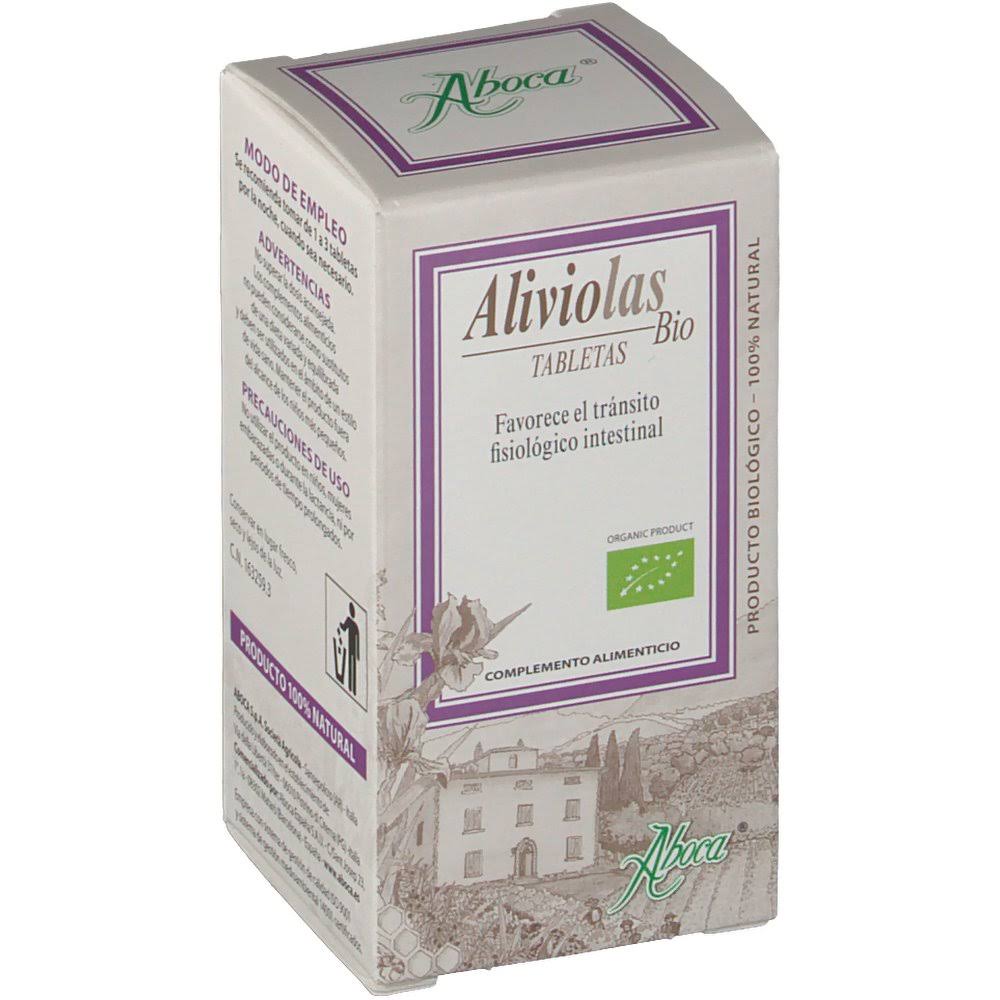 Aliviolas Bio 45 tabletas es un complemento alimenticio creado a base de productos naturales que ayuda a regularizar el tránsito intestinal. Aliviolas Bio está creado exclusivamente de productos 100% naturales y por su proceso de fabricación, que excluye aditivos y conservantes, se considera un producto biológico. Aboca crea esta linea de productos naturales con ingredientes seleccionados cuidadosamente y que pasan por un proceso de extracción que garantiza una concentración alta y adecuada de su componente activo principal, así Aboca crea productos de alta calidad. Recomendaciones de uso y contraindicaciones No consumir más de la dosis máxima recomendada diaria. Es un sustituto alimenticio que no puede usarse como sustituto de una alimentación balanceada y saludable. No es apto para niños. No consumir durante el embarazo o en período de lactancia. No tomar por períodos de tiempo prolongados.