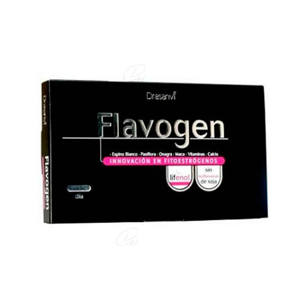 Lactato de calcio 225 mg, aceite de onagra microencapsulado (Oenothera biennis L.) 150 mg, extracto seco de maca (Lepidium peruvianum Chacon) 50 mg, extracto seco de lúpulo (Humulus lupulus L-Lifenol) 30 mg, almidón de maíz (agente de carga), antiaglomerante (estearato de magnesio), vitamina B6 (clorhidrato de piridoxina) 0,7 mg, vitamina A (acetato de retinilo) 0,4 mg, vitamina D (colecalciferol) 0,0025 mg y cápsula (envoltura (gelatina) y colorantes).